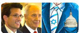 Led by the Zionist Jew and Republican Whip, Eric Cantor, the delegation’s visit comes out of “concern” that “too much pressure” is now being placed on Israel by the Obama administration. (Actually, the Jewish Lobby PAID for the trip. AIPAC President, David Victor, is between Peres and Cantor in the first picture above.)