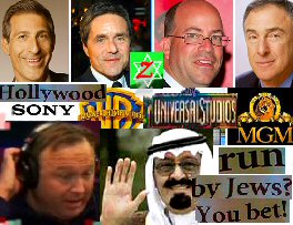 Zionist Jews own the entire media and it also includes newspapers, radio, TV aka Hollywood, magazines, book publishing companies, pharmaceuticals, foods, etc. There are some good Jews and I will not deny that at all.