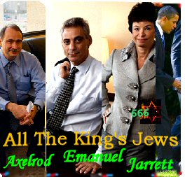 Abraham Foxman, Ben Shalom Bernanke, Rahm Emanuel, David Axelrod, Jacob Rothschild, — these are truly Anti Christ preCURSORS – for they CONTROL with JEW MONEY.