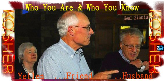 Janet Yellen, president of the San Francisco Federal Reserve Bank, to be the board’s Vice Chairman; -2- Peter Diamond, MIT economist; -3- Sarah Bloom Raskin, Maryland state banking regulator.One can’t help from wondering, is it required that everyone in the Fed be Jewish? Or to have Jewish connections and fealty? The answer is profoundly…and historically…obvious: unless you’re zionist kosher, you’re out of luck.