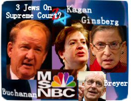 Now MSNBC has turned against their former columnist by accusing Buchanan of “rampaging against the Jews” simply because he wrote, (on his own Website), that the nomination of Elena Kagan to the Supreme Court brings a “disproportionate 33% of Jews” to the nation’s highest judicial bench.
