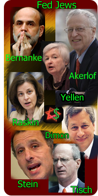 Vice Chairman of the Fed is Janet Yellen whose JEWISH husband, George Akerlof, is a consultant to the Federal Reserve as well as to Barclays for which he invented “paper” Gold and algorithms for rigging currency markets.