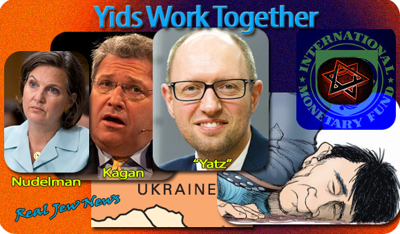 NOW THAT VICTORIA NULAND (born Nudelman, married to neocon Jew Kagan), got Yatz The Yid to head Kiev’s illegitimate regime, the IMF can easily loot Ukraine.