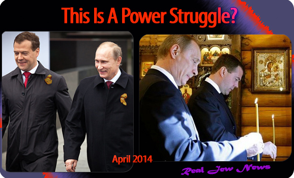 Yet contrary to all the disinfo barfed out by the Jew-owned press, not a word against Medvedev by Putin was ever heard by the myriads of Jewish disinfo agents.